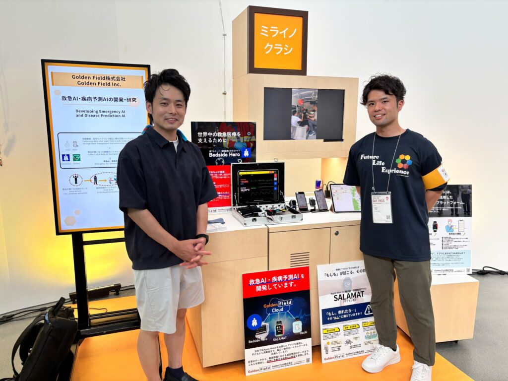 大阪・関西万博 出展完了のご報告 投稿者:Golden Field株式会社 投稿公開日:2025.10.04 投稿カテゴリー:お知らせ 弊社展示ブース Golden Field株式会社は、2025年日本国際博覧会(大阪・関西万博)「未来社会ショーケース事業(フューチャーライフゾーン・フューチャーライフエクスペリエンス)」に出展し、無事に展示期間(9月16日〜22日)を終えることができました。 機器を担当していただいた株式会社F&Dの工藤様と 会期中は、多くの皆様に弊社の取り組みをご紹介することができ、非常に実りある時間となりました。ご来場いただいた方々からの貴重なご意見やご期待の声は、私たちに大きな自信を与えてくれました。また、遠方から足を運んでくださった皆様、新たにご縁をいただいた皆様に心より感謝申し上げます。皆様のお力添えのおかげで、万博出展を無事に終えることができました。期間中には多くの商談の機会もいただき、今後さらに挑戦の幅を広げていけると確信しております。 代表コメント大阪万博では、本当に多くの方に弊社の取り組みを直接ご説明させていただく機会をいただきました。『早く実現してほしい』『今すぐ使いたい』といった声を多く頂戴し、実際に商談へと進ませていただけるお客様もいらっしゃいました。これは開発を進めてきた私たちにとって非常に嬉しいことであり、同時に取り組みの意義を強く感じる瞬間でもありました。この経験を糧に、実現に向けて今後も全力で努力を続けてまいります。引き続き、ご支援・ご指導を賜れましたら幸いです。代表取締役金野 利哉 説明をする弊社代表 Golden Field株式会社 防災・救急・医療の分野におけるアプリケーション開発、DXコンサルティングを行っている岩手県八幡平市の企業です。 おすすめ 出演した2025年2月3日(月)放送「ニッポン!こんな未来があるなんて~巨大企業の変革プロジェクト~」が公開されました 2025.02.03 年末年始休業のお知らせ 2023.12.28 サイト公開しました! 2023.07.18